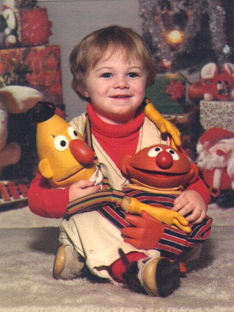 Studio photo of Ian at 2 with Ernie and Bert