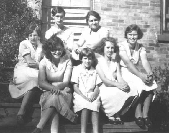 Gathering at The Maples, 1932, (from left, rear): Elinor Kerr, Catherine Leonard, Olive Aldred;