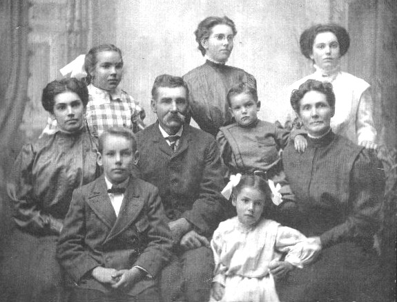 Orpha, Olive and Clara (back), Mea, Joseph, Joe and Emely (middle), Lorne and Lila (front)