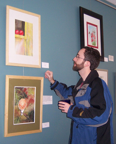 Mischa with "Ripening Tomatoes" and "Alaska Mushroom" at Meeting Grounds Coffee Shop in Middleton, 12/21/07
