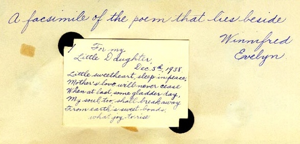 These are the final pages of the baby book written by Catherine E. Park for her first child, Winnifred  Evelyn Park (April 6-December 3, 1938)