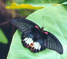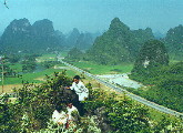 are in red August 21 (Sat), Beijing :I packed from 1:30 to 5:30 AM, when we had to board our shuttle to the airport. I really should have come home early and gone to bed since I had gotten no sleep the night before (due to studying all night for our final exam), but after our Friday evening farewell banquet all the teachers went out to the clubs near Bei Da [Beijing University] ("the Moon Bar" and "Solutions") with the students, which was too much fun to miss. So I got back with barely enough time to finish packing. Then the four of us--Anne (not the one who went with me to Inner Mongolia), Gilbert (from Milwaukee!), Danny, and I flew to Guilin on a Xinhua Airlines 737. Because they seem to be a fledgling company, they gave each passenger a little present (an odd little plastic thing in a fake-leather sheath--an LED in the plastic glows green when you press the handle). After a stopover at Xian they gave us another meal and another present (a Xinhua T-shirt this time). In Guilin I bought my plane ticket to Kunming--having a Bei Shi Da [Beijing Normal University] ID card is wonderful: the ticket was Y400 ($48) [$1 US ~ 8.3 Chinese yuan, also called Ren Min Bi], and my Lonely Planet guidebook listed the ticket as Y850, which means it had probably risen to at least Y900 by the time I bought mine. So my card lets me buy at less than 50% of the standard foreigner's cost. In comparison to the flight (just a couple hours), a train ticket is extremely difficult to buy without using CITS [the China International Travel Service] (who charges surtaxes), let alone finding a student ticket. So even if I had managed to get a hard-sleeper ticket for the ridiculously non-direct 29 hour ride (it only takes 31 hours by train from Beijing all the way to Guilin--about twice the distance from Kunming to Guilin!), I would have forked out almost Y300! Thats just one CSO [Chicago Symphony Orchestra] student rush tickets worth cheaper than my plane. Barely noticed Guilin, since we went right to the parking lot where buses leave for Yangshuo. No one would give us the real price, so we took forever to choose a bus, but finally we agreed on Y8 per person and at the same time met Pablo, a Spaniard who had recently graduated from Harvards Graduate School of Design and Architecture. After boarding we noticed Chinese passengers being charged Y6, but when I pointed that out to the lady, she of course said that the extra was for our luggage--an excuse clearly fabricated on the spot, but there was no way to argue the point. I woke up for the last 30 minutes of the hour and a half trip to Yangshuo--here was truly amazing scenery: everything that makes people rave about this place became apparent as we approached town. Severely vertical and yet rounded limestone karst peaks, covered in greenery and little twisty trees (just like in Chinese landscape paintings), rose straight up from the bright green flat rice paddies where farmers walked their water buffalo. We got into town, registered at the Good Companion Holiday Inn (quite a nice place) for their Y20 beds (all the Y10 ones were taken here and elsewhere), and walked down Yangshuos main shopping street Xi Jie. This place is truly designed for foreigners--restaurants dont always even have a Chinese menu, and hand painted T-shirts have cute things appealing to foreigners always being harassed by trinket sellers: "Hello banana!", "Hello CD music!". We ate dinner at the "under the Moon Cafe," which was a little expensive and had slow service, but it was nice for the four of us and Pablo to just sit and chill. Afterwards I left early and was asleep in my bed before 10 PM--it was amazing I stayed awake that long! August 22 (Sun) :Got up at 9:00 and ate breakfast alone at the youth hostels sidewalk tables, down the street from where we spent the night. I managed to convince the waitress to give me free tea with my pancake (banana) since everywhere else in China has free tea. Met a guy named Chris from Toronto, and eventually went and rented a bike (Y5 per day)--a good one with gears and traction treads. It turned out Chris and a couple American girls he just met were also going biking, but those girls ended up being awfully strange! They had no interest in being introduced to me, and said "excuse me, coming through!" as if I were just some obstacle and took off at full speed on their bikes--I followed but made no effort to go as fast. Leaving Yangshuo and going towards Moon Hill, the scenery was amazing--the road was surrounded by the regions characteristic green lumpy hills, some pointier than others, and they all moved slowly past on both sides, some faster than others because of their different distances from the road. Eventually the girls stopped because one of them had messed up her bike chain, and a local farmer guy was helping her fix it. I found a dirt road leading off from the highway and went to chase butterflies--after taking a whole bunch of pictures that probably wont be any good since my shutter speed was set a little low for using such close up 105 mm shots, I saw some people halfway up the side of the mountain next to me, and heard cows mooing up there too. Intrigued (how did cows get way up there??) I started looking for a path up the mountain, which I eventually found by following old piles of cow shit. It turned out the people, who had been yelling to each other in bizarre little high pitched voices, were children: ![]() Pretty soon I went back to the main road and biked over to Moon Hill. This place was a true tourist trap. After paying the Y8 admission ticket and extra Y1 bike watching fee, swarms of drink vendors start following you up the mountain. When you say you already have water, they say "but later youll need more! When you buy some, promise youll buy from me! OK? You have to promise!!" Luckily I met up with Anne just before starting the climb, which helped me find a reason to ignore the vendors (by talking with her). She was being followed by a woma