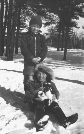 With Wicky's puppies, in Deep River, March 1949