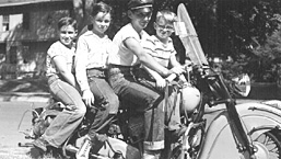 Our basement furnace was big and old, with lots of huge pipes leading from it, all covered with thick white insulation. Originally it was a coal furnace (we still had the remains of a coal bin), but it had been converted to fuel oil before we bought the house. Sometime in the early 1950s, Dad decided to convert the furnace once again-to natural gas. There were a few glitches at the beginning of this change-over to gas. I remember a very dramatic moment before the workings of the automatic pilot light were mastered. I came down the stairs to the basement to see Dad with a five-foot long piece of bamboo, lit at the end, reaching carefully into the furnace grate. Douglas was standing there helping. Suddenly a huge tongue of flame whooshed out to engulf them both. Very loud. It was much taller than them and possibly about ten feet long. It was gone in a second, with the furnace apparently burning properly after that. Dad came rushing over towards me, sputtering and amazed, with singed eyebrows and wide eyes, unhurt. Douglas, also unhurt and unfazed, had thrown The household was lively and exciting-a warm, special place to be with all the older teens/early 20s siblings. Betty and Douglas were leading lives much more exciting and exotic than mine. Betty lived with us for about a year and went out with a few boy friends who took her to parties. Before long she settled on her old flame from back home in Deep River: Murray. She moved back to Canada, and before long they were married. Maybe a year later, Betty and Murray (who was drawn to a PhD program in insect pathology at the University of Minnesota) came back to Minneapolis and lived on the third floor of the Humboldt house for a while. Betty served as sort of a housekeeper and baby sitter for us. Then baby Linda was born and charmed everyone who came by. Douglas lived with us for a while and studied at the U of M, too, earning a two-year degree. Douglas was an interesting brother to live with because he had a really exciting motorcycle that he rode everywhere. Occasionally I even got some rides. He started to wear a leather jacket and a black leather cap that made him look rebellious. Dad was dismayed but tolerated it. During the early 1950s, Douglas was drafted into the army for a couple of years, getting his training in Colorado. After he completed his service, he moved to Colorado to marry a young woman he had fallen in love with. Ruth and he were married in July of 1954. ![]()