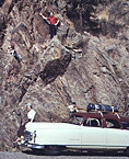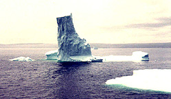 In another, larger village down the road, I saw a remarkable sight. In the harbor just about a hundred yards from the shore was an enormous iceberg jutting into the air, stuck on the shallow sea bottom. I found a good place to park my van the next day, in a public area near a waterfall, just a couple of miles outside of a village of probably 3,000 people. I loved to watch, from the cliff above, all the schools of tiny fish, swimming in masses of several thousand. They must have been sardines or anchovies or the like. In a school like that, with no leader, the fish kept folding around each other and changing direction like a giant thousand-armed octopus. I wished I had a video camera with me. My instamatic camera could not do justice to the scope of the panoramic spectacle.