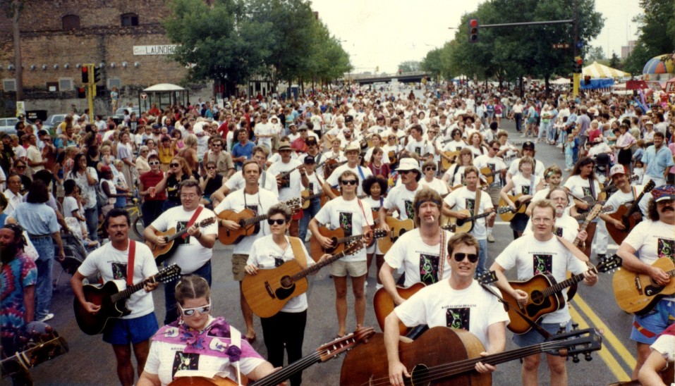The West Bank School of Music has many stories to tell, but one event stands out in my memory. An annual community happening for the Cedar-Riverside area of Minneapolis over the years was a special neighborhood celebration called Cedarfest. Musical performances of all types were held all day long on three stages. Some of the musicians were WBSM faculty members. Local businesses held open house events. ![]() One of the favorite features for the thousands of visitors was the Cedarfest parade, which took place on Cedar Avenue. One year in the mid-1980s, the West Bank School of Music made a big splash with its Marching Guitar Orchestra. This event, featuring guitar instructors at WBSM and their students, was organized by the long-time head of the guitar department, Dale Dahlquist. Parading down the street in rows were at least eighty volunteer guitar players. As mentioned, many were WBSM students, but many community players joined in. They performed several basic, well-known folk songs with surprising synchronicity. The players were kept together by three people standing in the back of a pickup truck at the head of the orchestra, holding four- foot-tall signs with giant chord names on them. The signs were bouncing with the rhythm of the songs, with only a single sign facing toward the marchers at any given time, showing everyone what chord to play during those beats. It was a magical experience for participants and viewers alike. There were two marchers in front of the pickup truck holding a giant banner displaying the school’s name and the Marching Guitar Orchestra title. The strumming of the guitars was sweetly accompanied by everyone’s singing voices joyously raised. More-advanced players were able to include some picking patterns, and other more sophisticated accompaniment. For several years following, people talked about that part of the parade as the “show-stopper” highlight. ‘Spider’ John Koerner, of Koerner, Ray and Glover lived on the West Bank about three blocks from the Music School. John knew about WBSM and was supportive of the work it was doing. He and I were casual acquaintances for several years during my time as the Music School’s director. Once on a Saturday afternoon, an intermediate guitar class was about to start. Five students were already in the main class room, guitars in hand, waiting for their teacher to arrive. As the instructor walked through the front door, I said hello to him, and at the same moment, I spotted John Koerner walking by the front of the Music school, carrying his guitar. Inspiration struck me. I asked the guitar teacher what he thought of the idea of John Koerner doing a guest class with his students that day. The teacher, who knew the Koerner, Ray and Glover group well, widened his eyes immediately. “For sure!” He seemed to be thrilled with idea. “Hold on, let me ask him!” I ran outside and cornered John on the sidewalk. “Hi, John! How would you like to earn some good money for an hour of time with our intermediate guitar students?” He thought for a moment and then said, “Wow, sure, why not?” As John headed for the Music School’s front steps, the teacher and I walked into the classroom ahead of him. “We have a surprise guest teacher today!” I announced. And in walked Spider John. The expressions on all their faces were remarkable to see. Everyone there knew who he was, and all were excited by his sudden appearance. For an hour, their teacher and the five students learned about the tricks John had devised for himself on the guitar. He had a distinctive style and everyone, including the teacher, was interested in finding out more. That chance encounter with a famous performer was a memorable event for them. Things clicked just right that day. I served as the executive director and taught music at the West Bank School from 1970 until 1984. Aside from teaching private lessons in piano and composition, I also led small classes (4-10 people) in the basics of music, music theory and ear training. As director, I worked hard on publicity, grant writing, design and printing of literature (with help from pros), and general administration duties. I was also responsible (with great volunteer help) for planning, publicizing, and producing dozens of special concerts a year to showcase our faculty members and other local performers. I (and subsequent directors) worked hard at choosing capable performers as faculty members, especially people who were good communicators—those able to explain and demonstrate the details of good performance skills.
