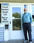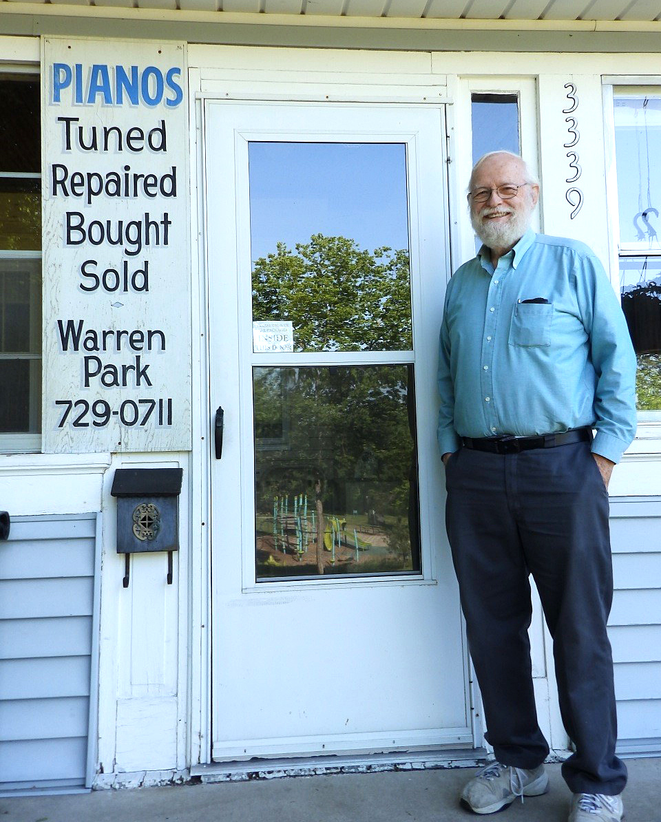I served on the West Bank School’s board of directors from the beginning through April, 2000, when I retired completely from WBSM, handing over the reins to other dedicated leaders. Around 2012, the Music School moved from its West Bank location (near 6th St. and Cedar Avenue) to an arts warehouse complex in St. Paul near Hamline University. The West Bank School of Music closed its doors for good during the spring of 2017, after 47 years, having served well all those thousands of people, young and old. Everyone seemed to have had a fine time learning to get around on their fiddles, mandolins, banjos, guitars, saxes, flutes, pianos, singing voices and whatever else. I will be forever grateful for the vast crowds of music lovers who shared my unusual vision for a music school. They included all the inspired executive directors over the years who led the way forward, the dedicated board members who brought their essential special skills to us all, and the amazingly capable instructors who carefully shared their precious performance secrets. Now the West Bank School’s service to the world is echoing through history. PIANO TUNING AND REPAIR In 1970, around the time that the Music School was established, I apprenticed part-time with an established piano tuner for a few months. With a few years of practice and experience, I became a professional piano tuner/technician myself. On-the-job training was my best teacher. Facing new challenges taught me new things over my whole time as a piano tuner/technician. Occasionally I found myself needing to improvise a solution for a necessary repair. I sometimes hunted through the piano supply catalog to find a part or tool that would help me solve a problem, and quite often I would discover an item that was designed for that very issue. After all, I was part of a long line of piano repair people who had faced similar situations. One such tool was a special handle with a spring pin that allowed the loop end of a bass string to be wound tighter and easily re-hooked onto the hitch pin. This sometimes would improve the sound of the lower range on an old upright piano whose strings had lost some of their clear tone quality.