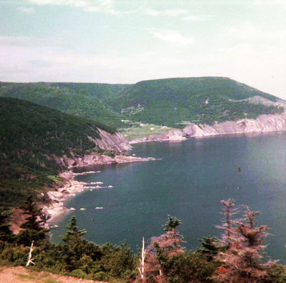 One day in my travels, outside a fairly large city (perhaps 20,000), I sort of lost my way. I don't know how it happened, but I missed the road through town that I was supposed to follow. Instead of sailing through without any confusion, I ended up stuck in a sudden parade of cars all headed the same direction down a side road. A traffic jam in Newfoundland? Impossible! But I was stuck with them and had to follow the herd until I could right myself and return to the main street. The line of cars proceeded across an actual airplane runway, turned around a hill and there it was! The place where everyone was headed. This was the time of morning when the work-shift changed at an enormous fish processing plant, where about three hundred people worked at one time. It may have been a cannery too. I knew I was not on the work schedule that day, so after while I was able to break away from the procession and turn around. A few other cars were leaving the parade, too, so I was not alone in my purpose. I was just about back around the bend again when workers on foot stopped all the cars in both directions. So, we had to wait. Why became obvious as the noise of an approaching propeller airplane came out of a cloud. Soon, a small, single-engine plane appeared, growing closer and closer to the runway. The cars looked awfully close to their flight path, but the workers knew what they were doing, and the plane landed safely in front of us, then taxied to a warehouse down the way. The workers motioned us to go on again, and soon there was another traffic jam, with most of the cars coming at me. There were lots of fish plant employees yet to arrive, and I was pleased to get free of them all. In town again, I found where I should have followed a different street through the three-block downtown area. That was about 45 minutes out of my day which I could never recover. Toward evening on another day, having found a nice open space in the woods to park my van for the night, I happened to meet a group of four travelers who were staying at a nearby campground. They were nice people from Ontario and were pleased when I told them that I was born there. I later found myself in a rented boat with them, not far from shore. Although the boat had a small outboard motor on it, it was just drifting in the water for what we were up to. We all had in our hands strong fish lines attached to substantial sharp hooks about three inches long. We were all learning how to catch ocean fish by “jigging.” This is a simple process where people hang the lines overboard and repeatedly yank the lines up about two feet. The fish get curious and swim up to the shiny, fast-moving objects. Once in a while, they get impaled by someone's hook. I caught a flounder that way, my first. It was about a foot and a half long! No one else caught anything that time, so we took my flounder back to their campground and fried it in a pan on their fire. It was big enough for us all to have a meal, with some fried greens. What an exciting event for someone who had never before been on a small boat on the ocean. A couple of days later I was invited by the same people to go down to the shore and meet a young, genuine Newfoundland fisherman. This guy had been born into this life-he, his parents, and his brothers all made their living this way. With encouragement from the Ontarians who had met him a couple of days before, we were given a demonstration by a real pro of how to clean and fillet a fat, freshly-caught codfish (over two feet long) in record time. At about age 22, this guy's strength and skill were amazing to behold. He had everything set up already: the fish on a clean table with plates, knives, and a bucket to contain the non-useable fish parts. One of the onlookers looked at his watch and suddenly yelled, “GO!” The Newfoundlander surprised everyone by bending the fish's head completely backward and snapping it off with both hands. The fish spine made a big, broken-branch sound as he performed this move. Then he dressed the fish, getting rid of all the innards with skillful knife thrusts. Soon, he was, with lightning speed, delicately cutting through the skin and folding it back to get at the flesh inside. He produced what seemed to be about ten fat fillets from each side of the fish, probably at least fourteen pounds of codfish for the open-air market in town. His time: 2 minutes and 15 seconds. It was the most amazing fish filleting demo I had ever seen. Wow. Okay, I may not have seen many of those, even on TV. Newfoundlanders talk with a strong accent, sort of an off-shoot of Irish with a twist. It was mostly understandable, but some people were unintelligible to me when they talked fast. I once asked a store clerk how to get to a nearby town called English Harbor. He said, “Angleesh Harba?” He pointed in the direction I was to drive. “Ye go bock to ta meen rood, fur aboot three moiles…” (“You go back to the main road, for about three miles…”). I once picked up a hitch-hiker in his early twenties who had an interesting way of making all his verbs in third person, apparently a common practice in some parts of Newfoundland. I asked what he did for a living, and he told me, “I works for the provincial schools. I travels around from school to school helping set up during summer, and in fall, I teaches.” Fourth grade kids, it turned out. He asked me, “Did you land in Newfoundland?” by which he meant did I move there. “No, I'm just visiting,” I told him.
