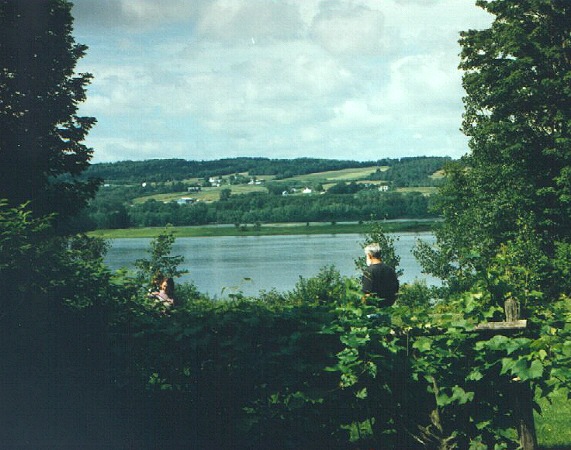 Catherine and James at Betty and Charlie's garden in Fredericton with the St. John River in the background