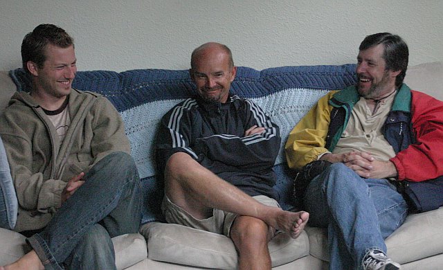 Dan Kelm, Dan McAllister and Donavon at Donavon's house in Benicia.