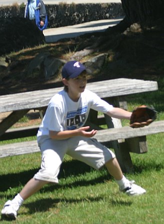 Christopher catches the throw.