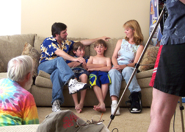 James (L) and Mischa (R) interview Donavon, Jonathan, Christopher and Shellie for the reunion DVD.