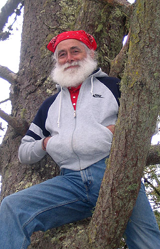 Robert up the tree at Muir Beach Overlook. 8/19/06