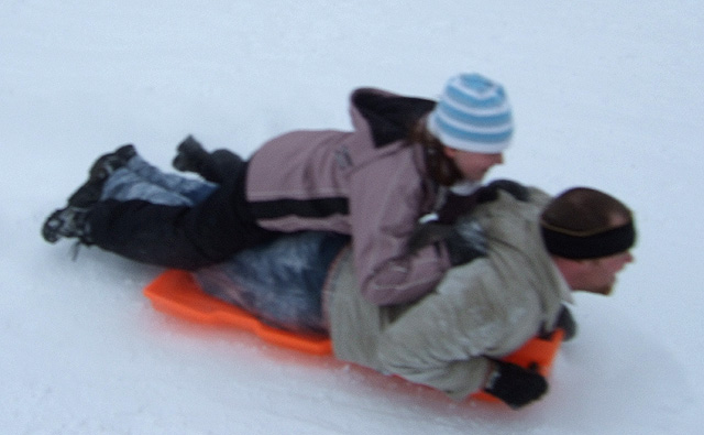 Jamie and Daniel sledding in Powderhorn Park, Dec. 30, 2007.