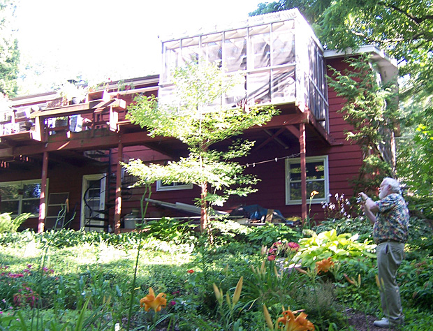 Back of the house with screen portch (and flower photographer from Minneapolist) in 2010.