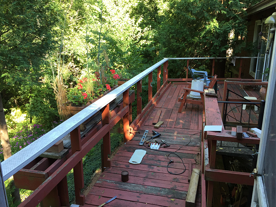Finally the railing and its posts had to be reinstalled.