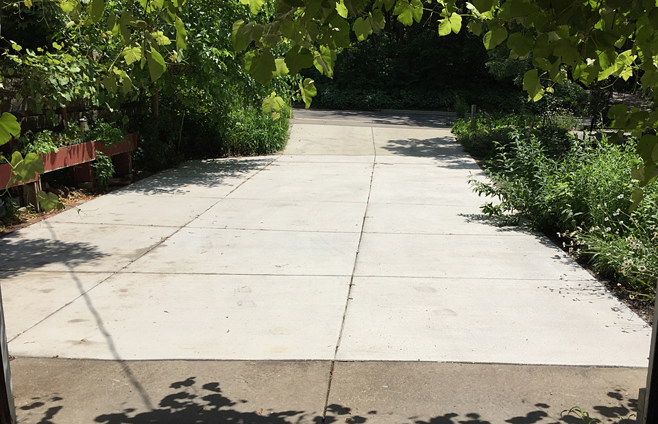 After curing for more than a week the concrete looked much whiter. Now we have a smooth surface that can hold 5 cars when we have our Winter Musicale. Parking is no longer allowed on either side of our street.