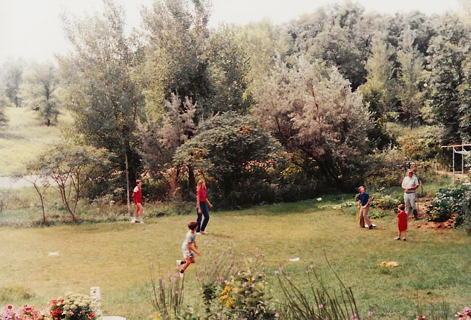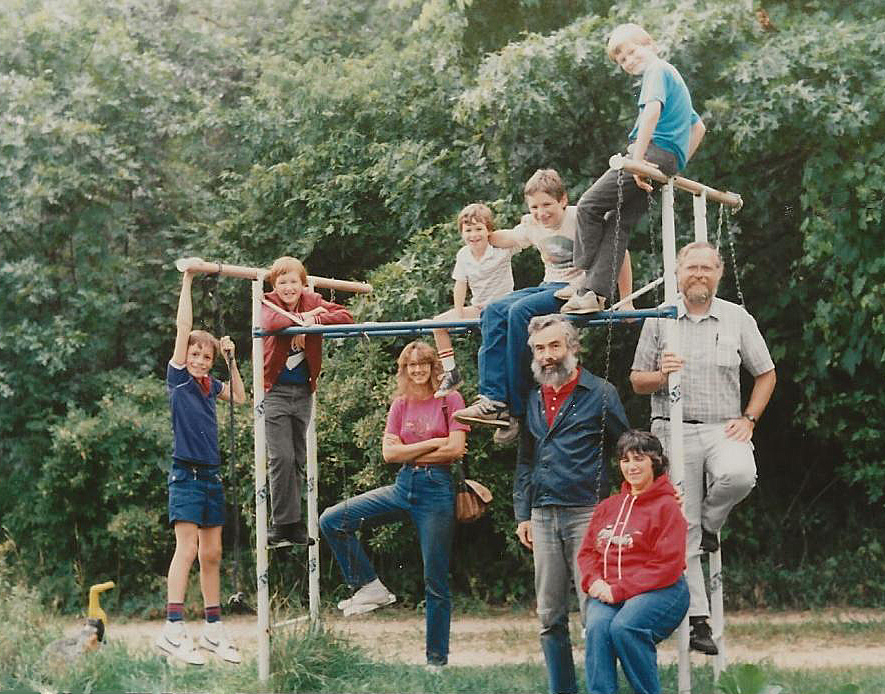 I also installed a jungle gym for the kids to use. Here Warren and family were visiting, 1988.