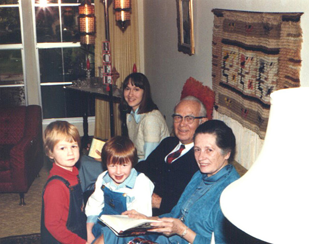 Daniel, Jonathan, Patty, Wilford and Evelyn at Wilford and Evelyn's Prescott home, Dec. 1983.