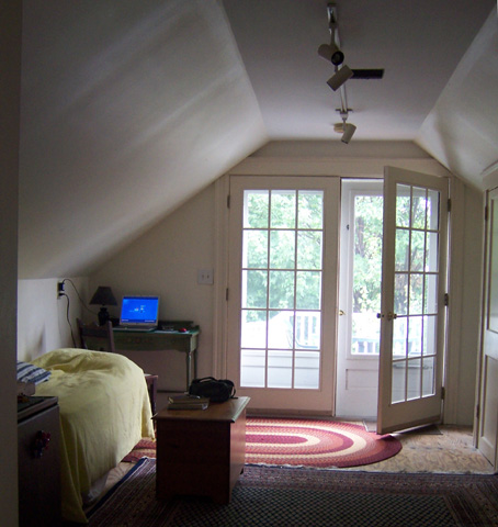It was a rainy morning and I gave Barb and Warren, with his suitcase full of music to sell, a ride to First Church in Boston (http://firstchurchboston.org/), site of the first session of the Unitarian Universalist Musicians Network conference they were attending. We missed a Massachusetts Ave. detour near Harvard Square and had trouble finding where we were on the Boston map or on the maps in the Pocket Atlas of Metro Boston which we now had along, but finally reached the church. On the return I missed my Ringe Ave. turn, at about the point where a police officer was stopping traffic because of a funeral, and got on a highway where I couldn't turn left, but I finally got back to Margot's a little after 10 am. It rained off and on all day so I stayed in, took a few photos of Margot's 3rd floor, and worked on things I had on Barb's laptop computer.