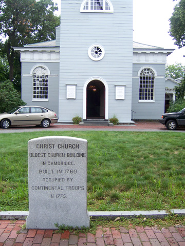 I headed for the Harvard area by bike at the same time as Warren and Barbara headed for the subway to their conference. I took photos of buildings, statues, etc., off and on campus. The strangest building was the "Lampoon Castle" on Bow St. Next I biked along the Cambridge side of the Charles River and took some photo of, and from, bridges across the river. Returning to the campus area I biked through JFK Park to the Old Cambridge Burying Ground next to Christ Church, oldest church building in Cambridge, built 1760.