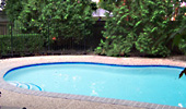 On the way back to Margot's for a late lunch I took a couple of photos of a big old white church next to Massachusetts Ave. which did not appear to be in use. I took 157 photos before returning, which left just enough battery power to take one more photo over the back fence at Margot's, of her neighbor's swimming pool.