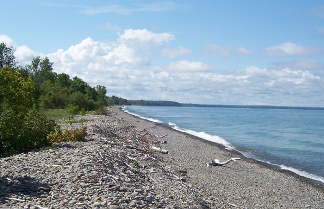 In the morning after breakfast I drove up to Rainbow Shores and the bird sanctuary parking lot near there, leaving Barb and Jim to talk more (with Bill mainly listening). I hiked up the shoreline of wave-rounded stones and took some shore and stone closeup photos, then returned in time for a noon lunch with the four of us. After lunch Bill and Jim headed for Bill's storage locker 30 miles away in Watertown and Barb and I headed home. She had considered staying another night but decided she did not feel well enough. We spent the night at a Day's Inn in western Ohio. We had decided not to try to visit anyone one the way home to avoid spreading Barb's germs.