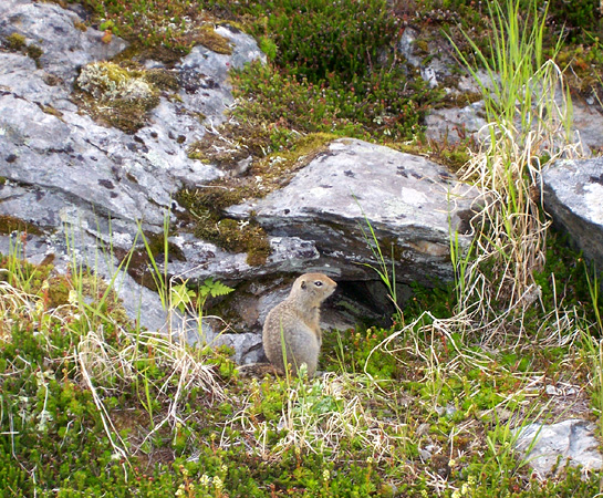 Local resident at Hatcher Pass, an artic ground squirrel, by the shore of Summit Lake.