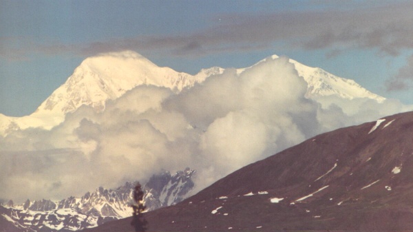View of Mt. McKinley from highway south of entrance to Denali National Park.