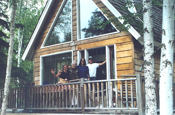 Casey, Nona, Patty and Tim on front porch of Casey's old house in Big Lake.