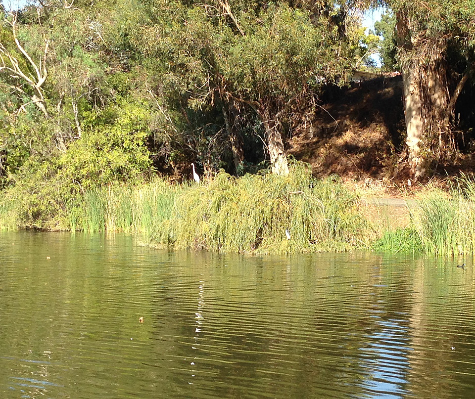 Tired of the man with an iPhone, the egret finally moved to the other side of the lake