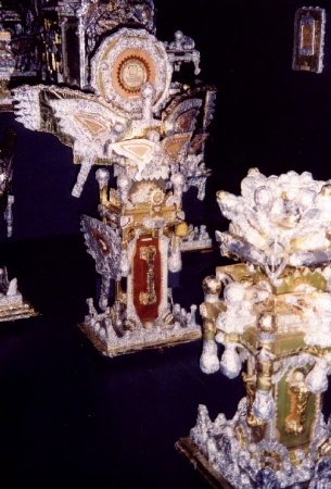 Folk Art Museum, Colonial Williamsburg. Odd religious altars made with found objects and colored foils.