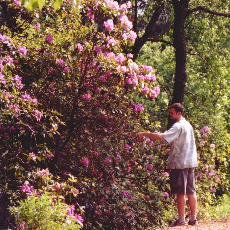 Daniel examines giant magnolia bushes by the Biltmore House.