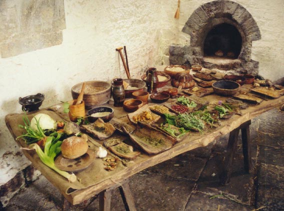 Typical meal preparation as it would have been at Glastonbury Abbey.