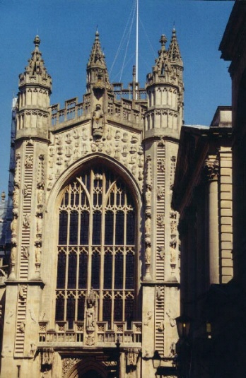 Detail of the front of the Bath Cathedral.