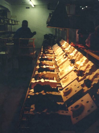 A row of molds for small statues made by Wedgewood.
