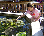 Wednesday was zoo day. It was sunny but cool. Tavery got to use Margot's digital camera. The baby sting rays were again a highlight. We saw marine animals both above and below the water line. Other stops were at the merry-go-round, the petting zoo, and a bird house where Tavery was unsuccessful in getting parakeets to perch on her sleeve.