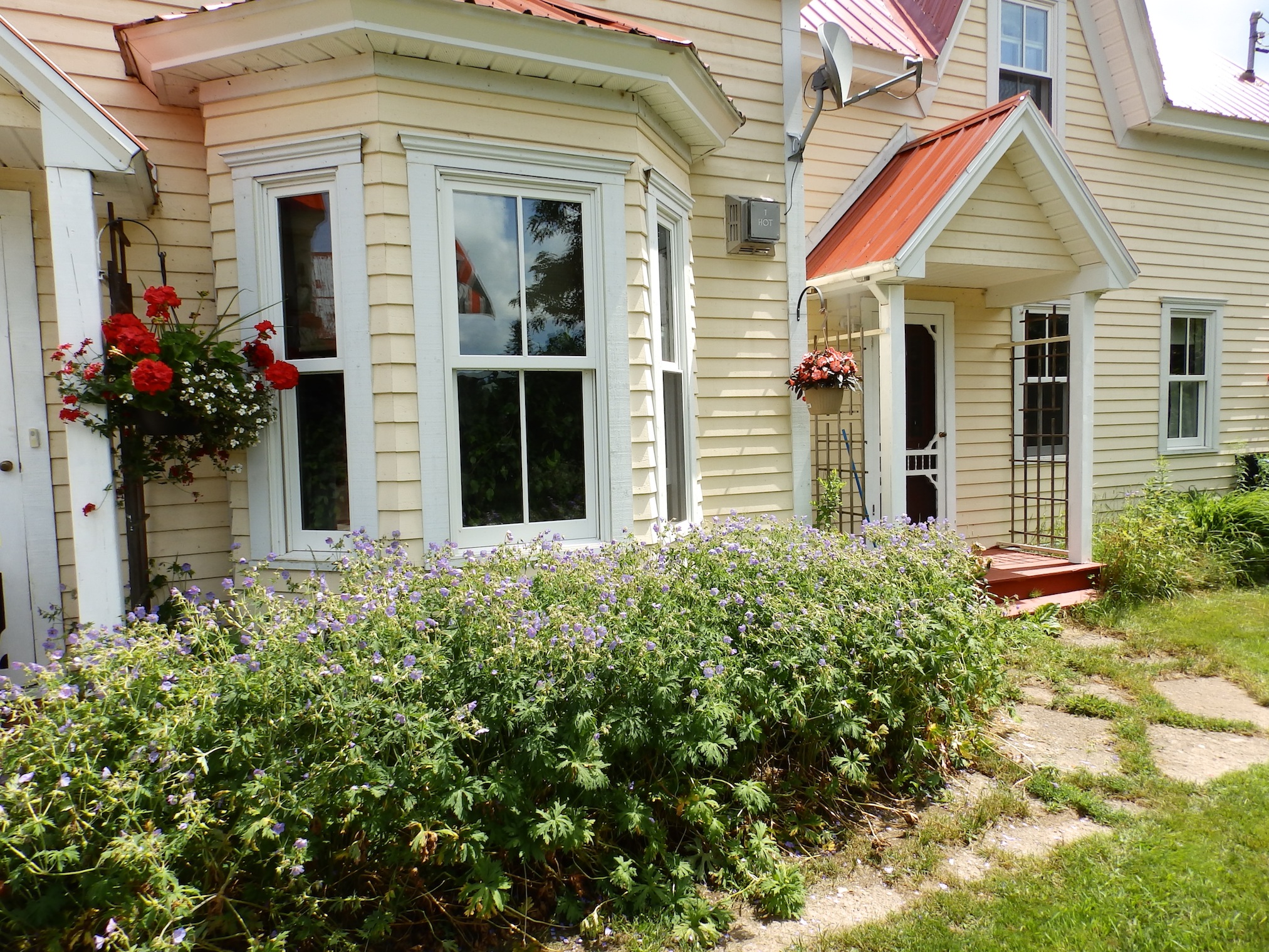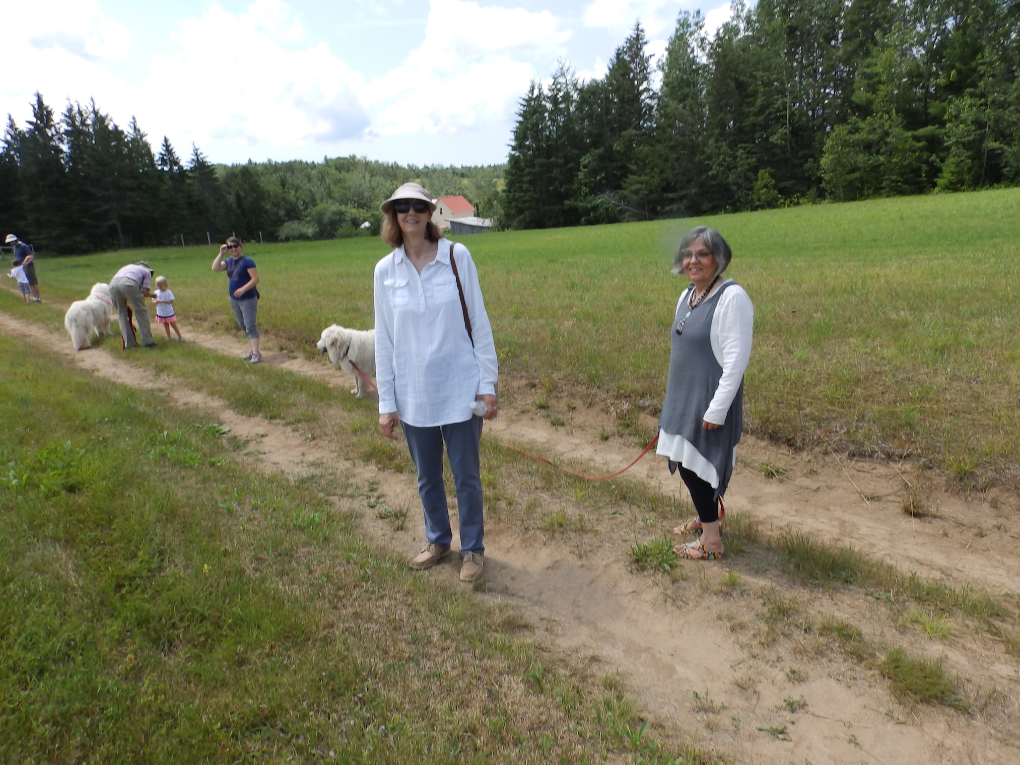 | Patty and Linda (others in the background) on tractor path. Linda and Tony’s farmhouse in the distance. |