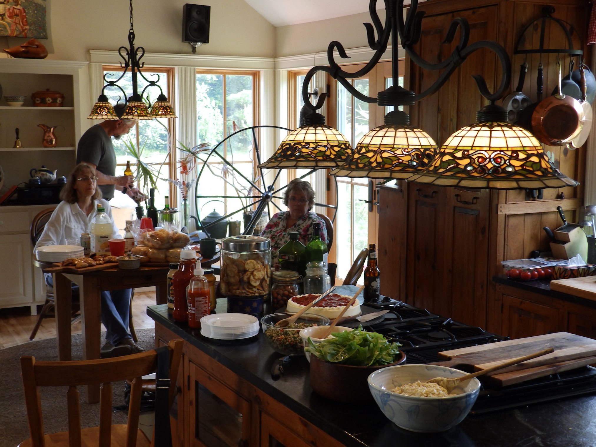 | Linda and Tony’s beautiful kitchen with a great spread of food. Patty, Brian, Jennifer |