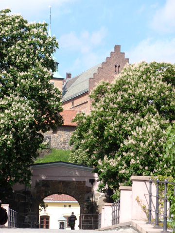 13. Entrance to the ancient Akershus fortress overlooking the harbor in Olso.