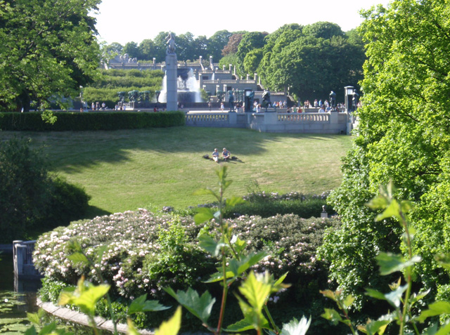 37a. Near the entrance to an enormous sculpture park in Oslo called Vigeland Park, which features the decades-long life’s work of Norwegian 20th-century artist Gustav Vigeland. This park covers many acres in Olso.