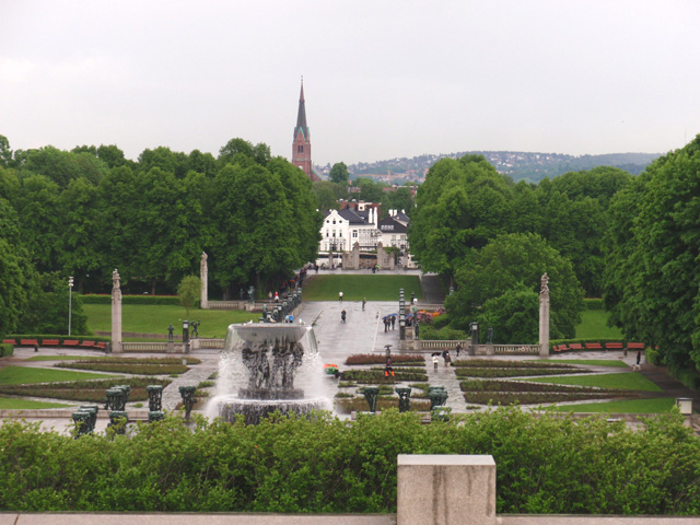 43. Vigeland Park view from the obelisk area towards downtown Olso.