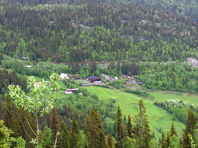 70. View from the bus as it travels up and down the windy mountain roads, with little clusters of houses and farm buildings beside the road.