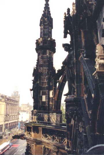 View of the upper portion of the Scott Tower from the highest available balcony.