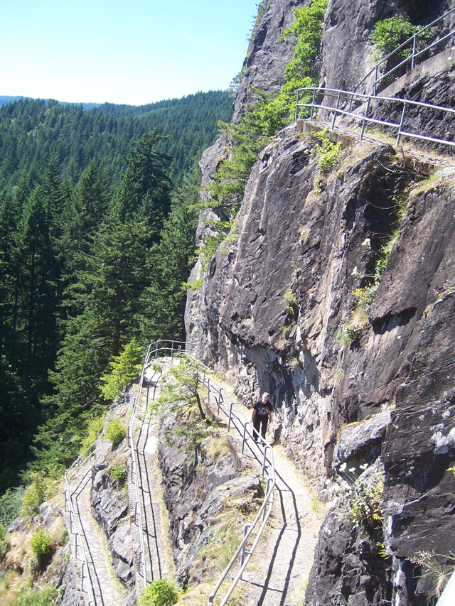 Barbara on the path to the top of Beacon Rock, 6/25/07.