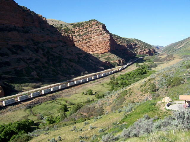 Train passing highway rest area