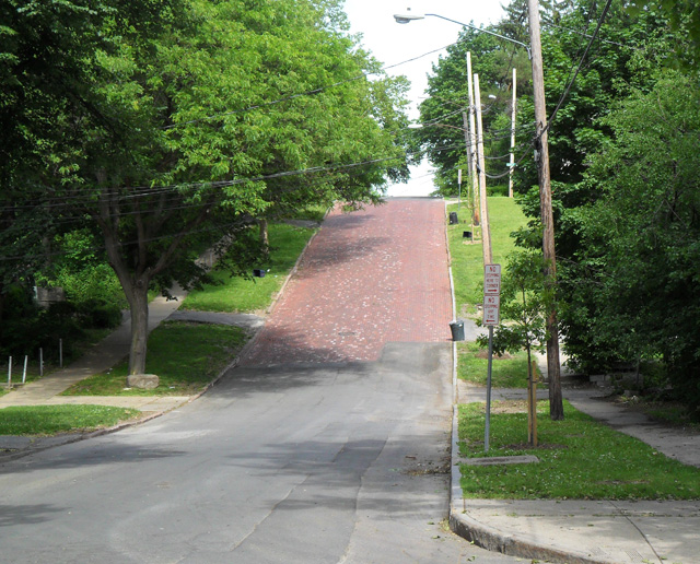 A steep hill for an old man to bike up. (Good thing I'm only 73.)