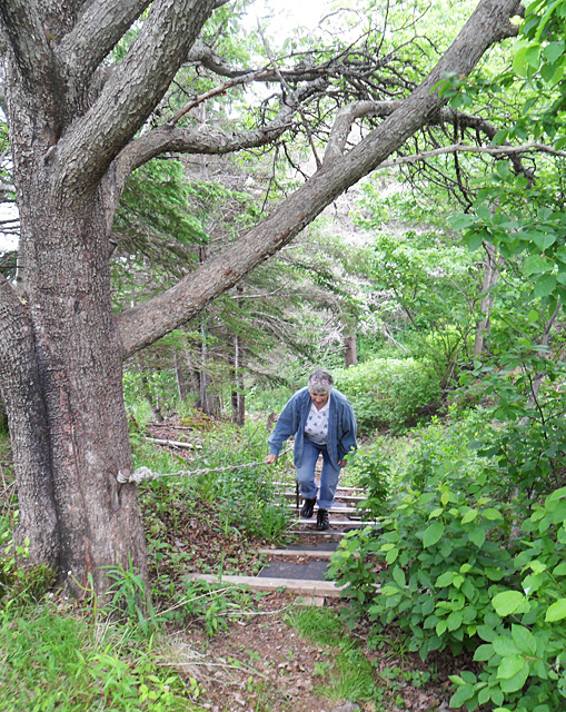 Barb comes up the crude stairway