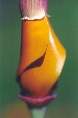 Half-popped California poppy near Martinez, CA,
