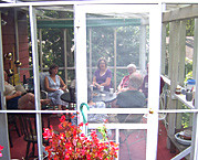 We have made two significant changes to the house to make it more ‘ours.’ There was a deck across the entire back at the first story level with two doors, one into the livingroom and one into the bedroom. Bob added a screened porch over the portion that opens from the bedroom which is a great place to sit and read without being bothered by mosquitoes or to gather for a summer supper. It is also Casey’s cat TC’s favorite place when he is visiting.